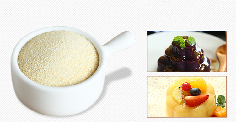 明膠按用途可分為照相、食用、藥用及工業(yè)四類。食用明膠作為一種增稠劑廣泛使用于食品工業(yè)的添加如果凍、食用色素、高級軟糖、冰其淋、干酷、酸奶、冷凍食品等。在化工行業(yè)主要用作粘合、乳化和高級化妝品等制作的原料。
